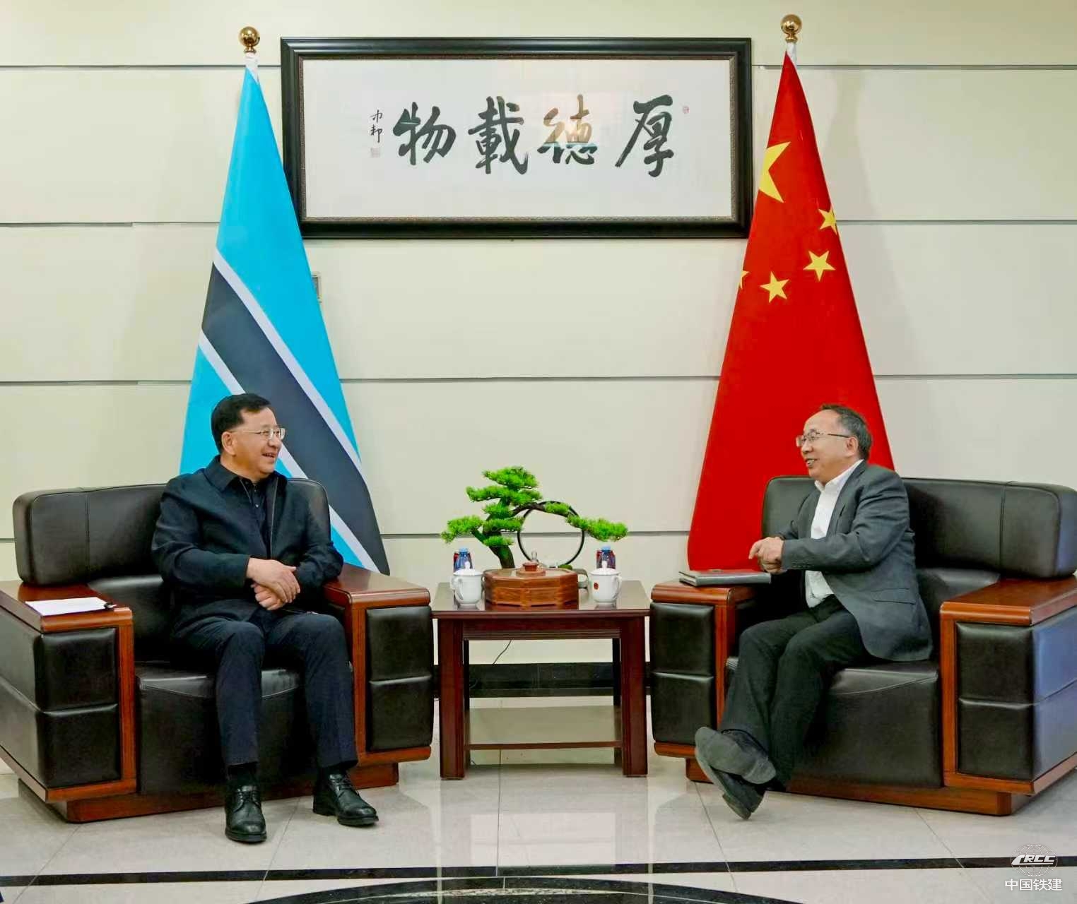 中國駐博茨瓦納大使館參贊蘭玉強;中國鐵建副總裁趙佃龍,有關部門、單位負責人參加會談。